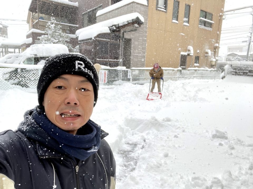 昨日の段階で今日は雪かきが必要になると分かっていたので、夕方に社内連絡網で30分早く出社するように伝達しました。