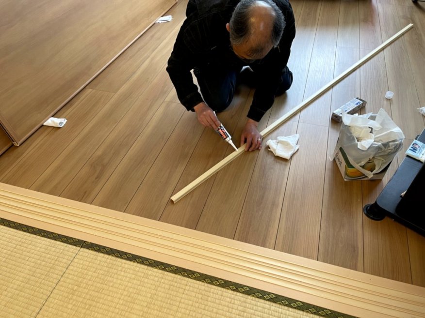外れかけていた鴨居のプラスチックレールを再度接着する堀下