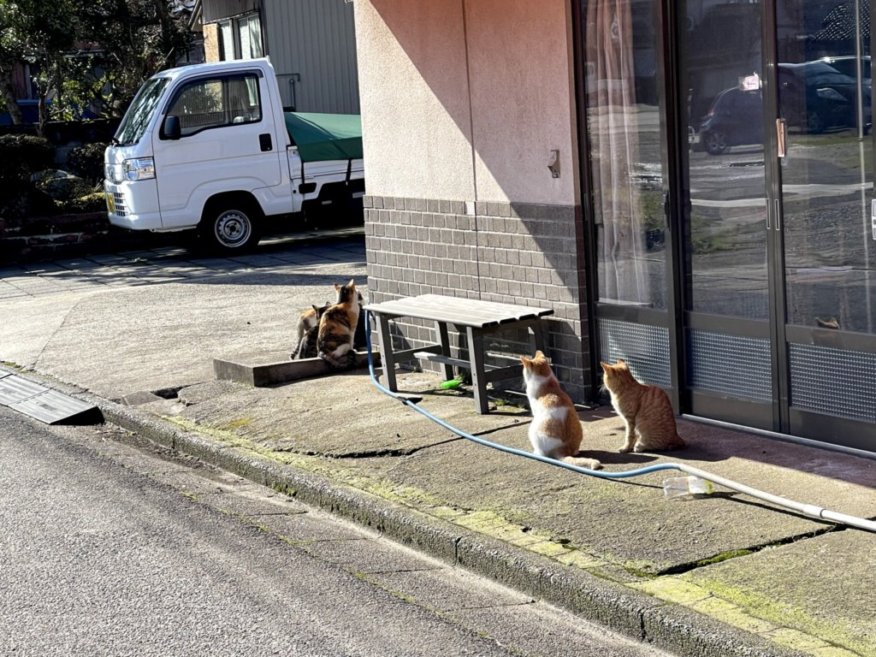 近所では放し飼い?野良ちゃん?猫が多数日向ぼっこしてました。