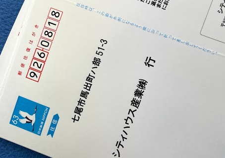 このハガキを印刷する前に、返信面にお客様の住所氏名を1枚だけ間違えて印刷してしまい、「こうならないように気をつけなきゃ。。。」と、そのハガキを見ながらハガキをプリンターにセットしたら、見事に間違えた通り(往信面をシティハウス)に印刷してしまいました。苦笑