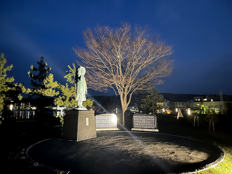 女子高生がベンチでお話しているところお邪魔して申し訳なかったのですが、マリンパークの長谷川等伯さんに挨拶して、マリンパークを後にしたのでした。笑