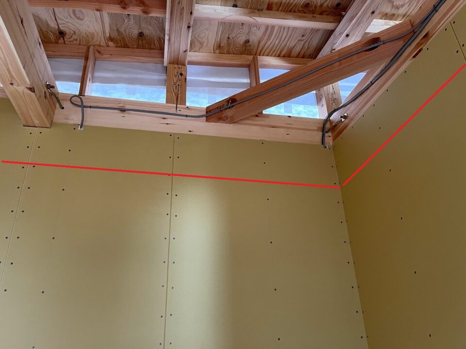 壁を桁まで張り上げて、赤線のところに天井をつくります