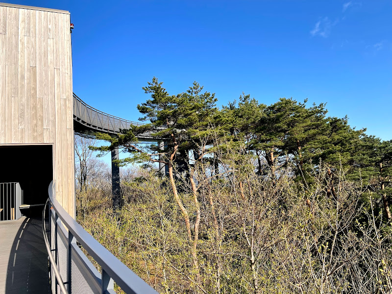 ゆめてらすは高い展望台から七尾湾を一望できるスポットです。なので、当たり前のように上の写真のような通路を展望に向かって歩いていきます。最初は何気なしにこんなところを歩いていったのですが、気付いたら物凄く高く、怖くて通路の真ん中を歩いていきました。笑
