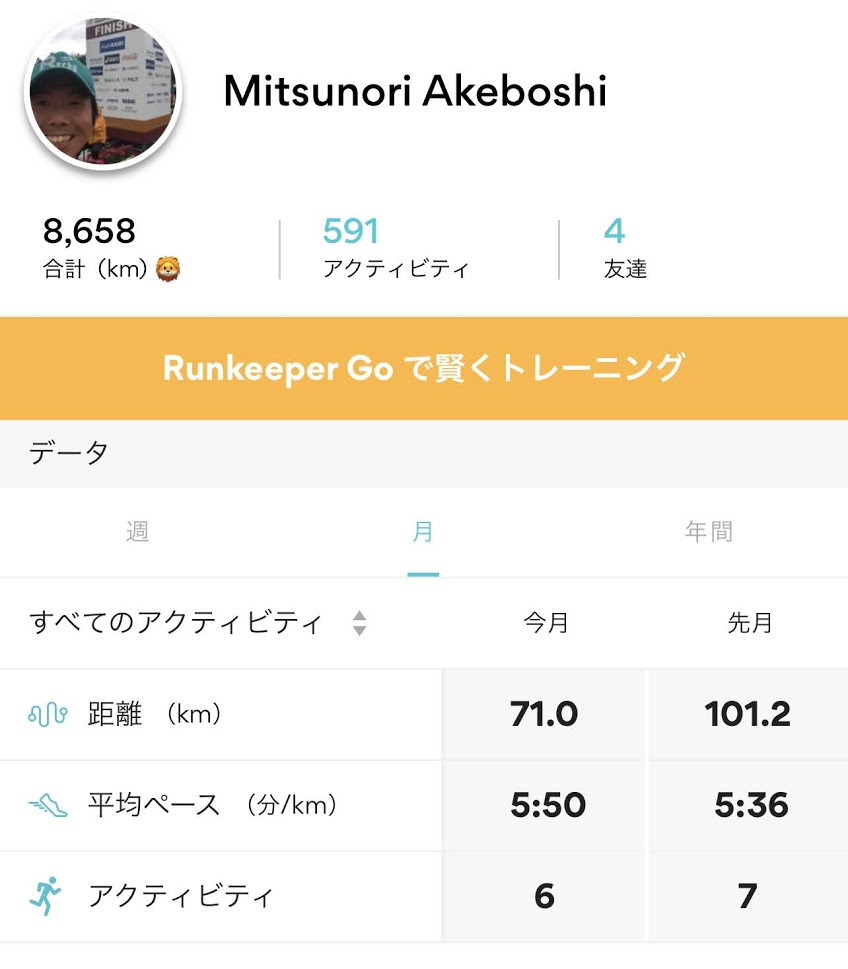 5月は近年稀にみる多い回数&距離でランニングをしている 明星光紀(あけぼしみつのり) です。