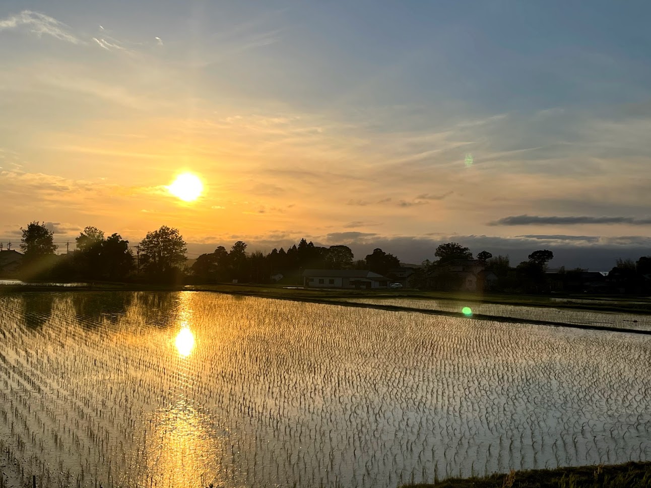 夕陽を見ながらのランニング。万行の田んぼ越しに見える夕陽が結構好きです♡