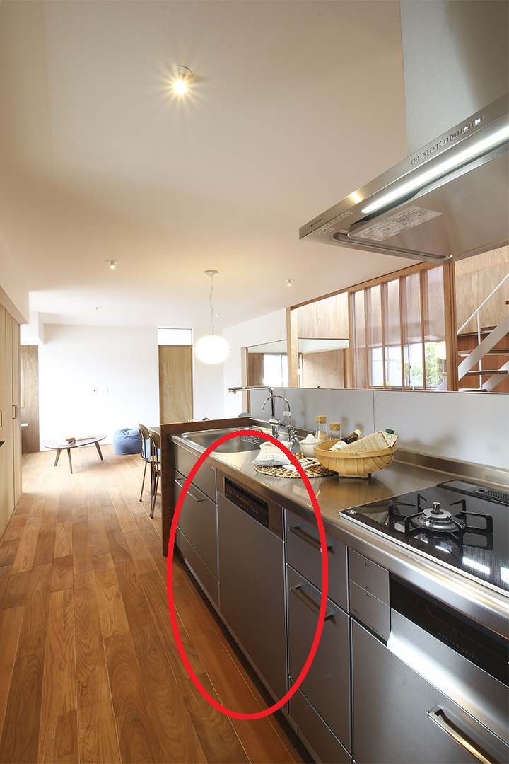 今回、T様邸の食洗機にはMiele製品を採用。フルオープンでとても人気のある製品です。ただ、どこのキッチンメーカーでも採用できる品物ではく、現在弊社が取り扱い出来るのはLIXILさんとナスラックさんのみとなっています。(T様邸のキッチンはナスラックさん)
