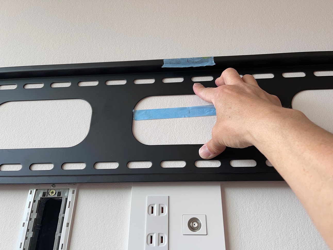 上の写真の背面プレートをつけ、TVを架ける前に無事にHDMIの壁内配線も済ませました。そして、いざ設置!!!