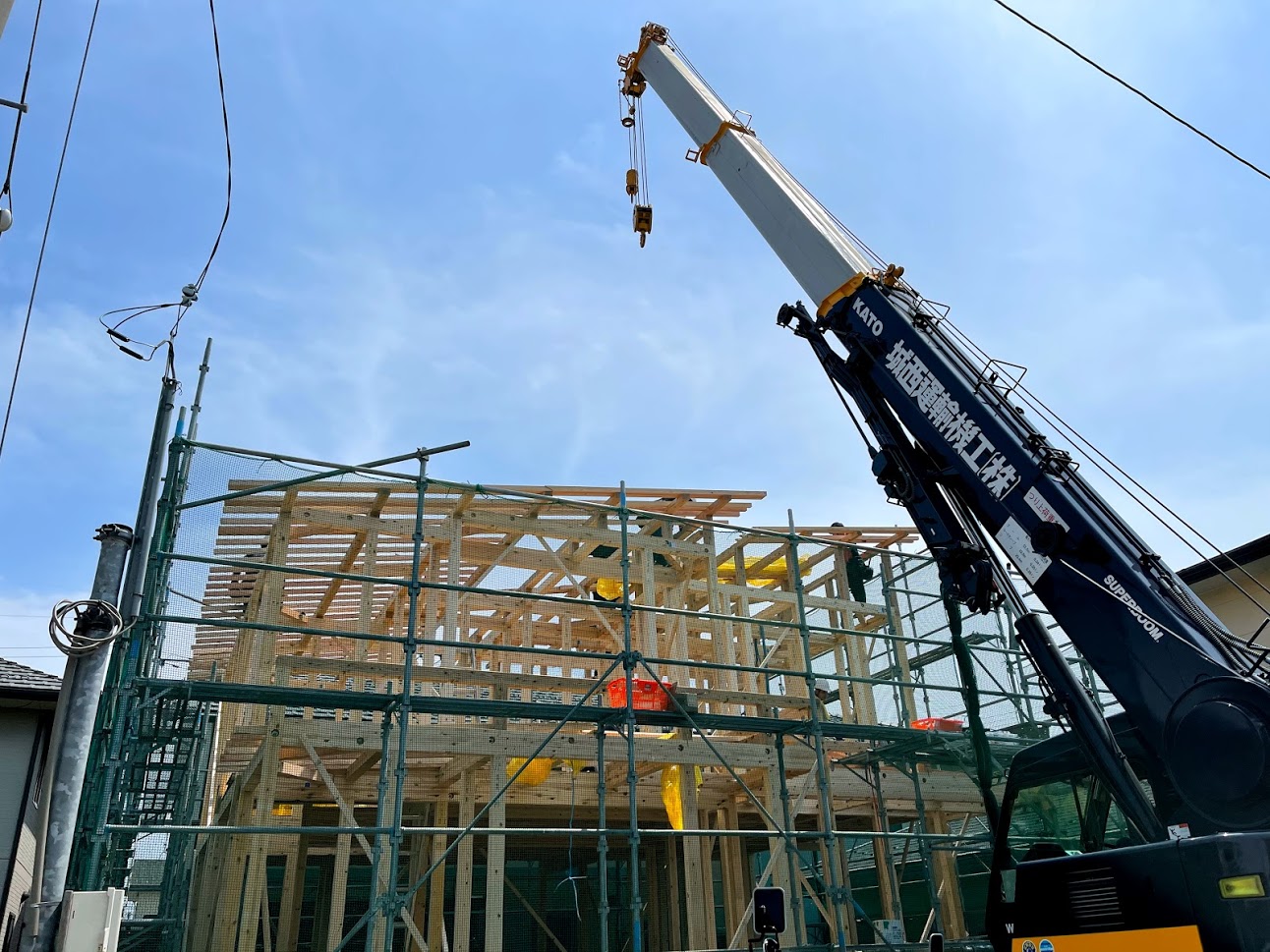 さて、昨日はめちゃくちゃ良い天気のなか、七尾市内で上棟作業がありました。