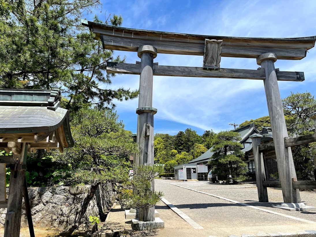 たしか5月に参拝しに訪れた時だったと思うのですが、駐車場に車を停めようとこの鳥居の前を通り過ぎる際、1台の車が鳥居の前、神殿の方に向かって駐車しているのを見かけました。