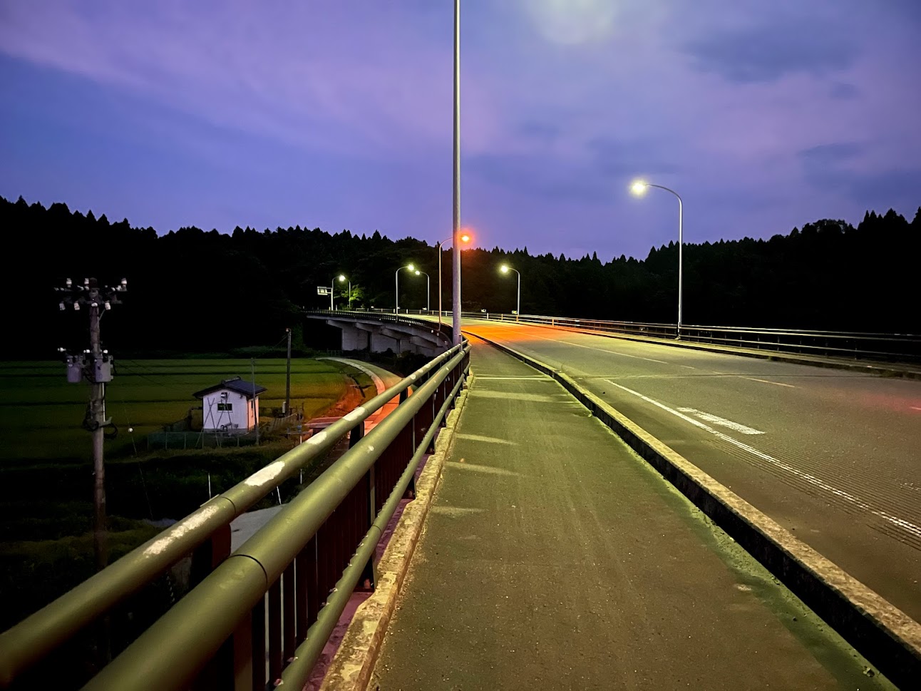 走り始めたのがちょっと遅かったのですが、折り返し付近では綺麗な夕日をみることもできました。って、もう暑くて汗だくで景色どころではなかったんですけどね。笑