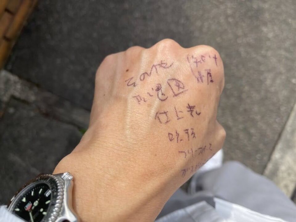 で、指摘事項をメモしようとカバンの中をみるもメモ帳も書き留められるような紙もない。。。