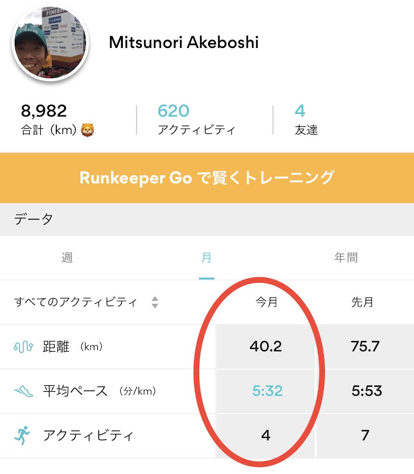 昨日は1週間ぶりにランニングをした 明星光紀(あけぼしみつのり) です。今月に入り気候的にも大分走りやすくなり、気持ちよく走れている事もあり、それなりに距離も走っているんだろうな~とスマホのランニングアプリをチェックしたところ、予想をはるかに下回る走行距離となっていました。。。