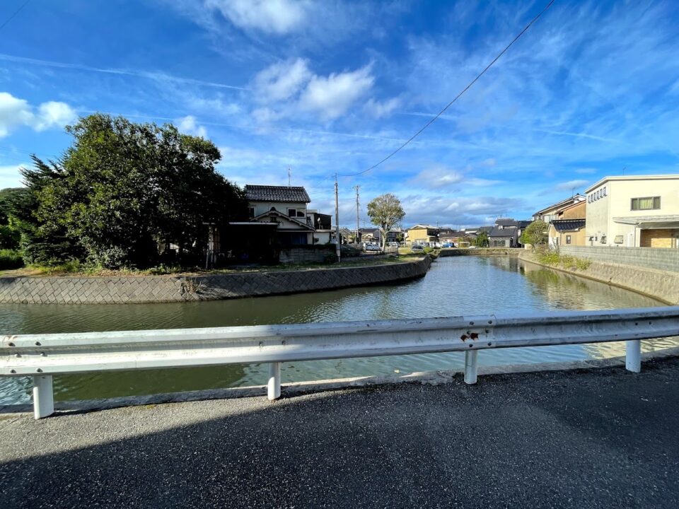 郵便局への道中にある川。このカーブ具合がお城を守るお濠みたいで結構好きです^^(小丸山城のマップを見る限りだとお濠ではないような気もします。)