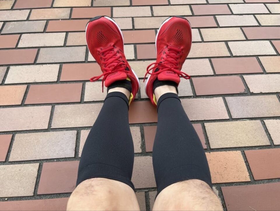 長距離時の必須アイテム=ふくらはぎサポーターも着用