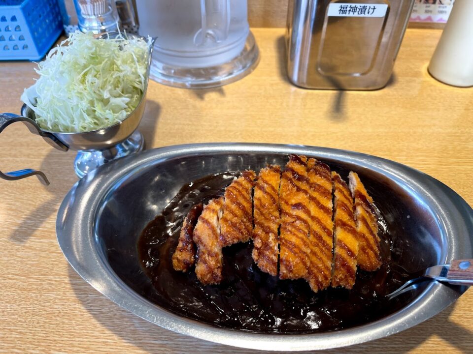 鉄板メニューのチキンカツカレー(小)とキャベツ別皿大盛り
