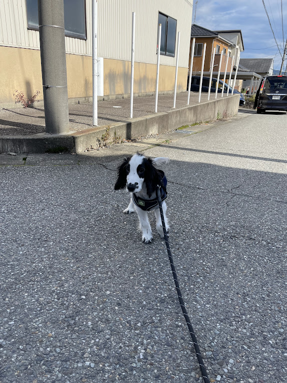 ケージを綺麗にしてからお散歩に繰り出したぼっちゃま。天気がよいせいもあってか、それなりにしっかり歩いてくれました。まだお外でおしっことウンチは出来ていませんが。。。