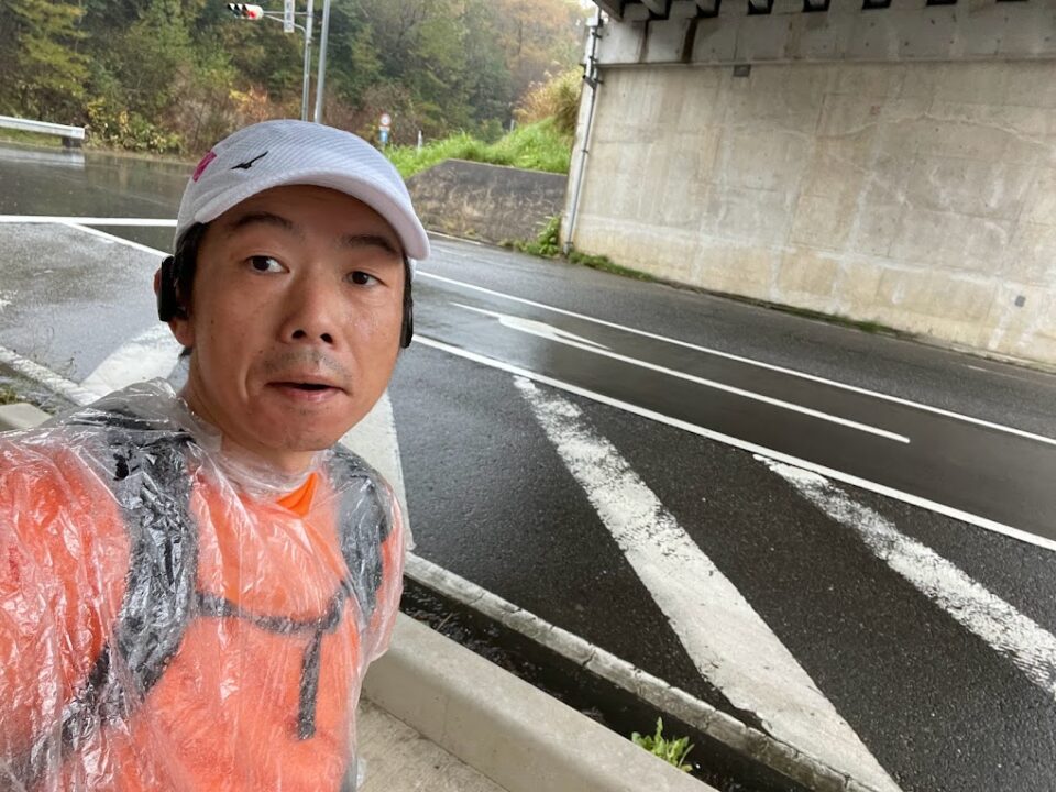 お散歩の途中で小雨が降ってきたせいか、終盤は歩かなくなったので、抱っこして帰宅。帰宅後は「今日は走る!」決めていたので、レインポンチョっていうのか?100均で購入したビニールのポンチョをかぶって走ってきました。