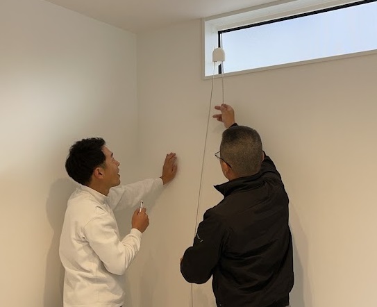 先日の羽咋市のお客様宅(担当:堂下)の完成検査で職人さんと話をしているところ