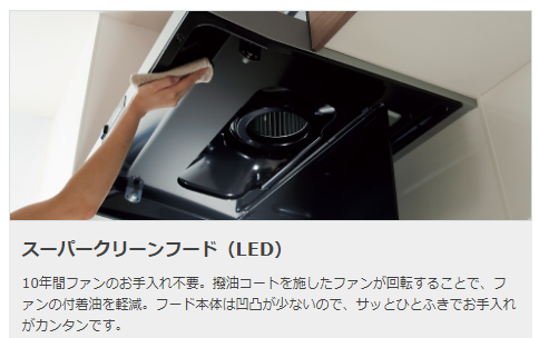昨年夏にリフォームした我が家のキッチンもお手入れの事を考えてスーパークリーンフードを採用したのですが、メーカーさんのショールームではコスト的な事あり、まずは前者のフィルタータイプのものからご案内されます。