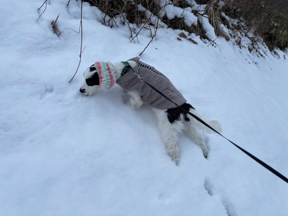 固まった雪をバリバリ食べるのが好きなロン