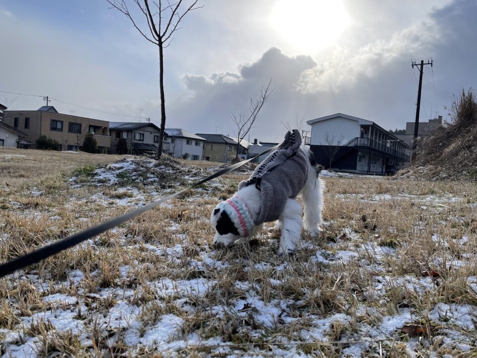 お風呂に入る前にお散歩してきたロン。今日は風も強くて寒かった~。ちなみにいつもリードにテンションかかっているのは、伸び縮みするリードだからです。常に引っ張っているわけではありませんよ。笑