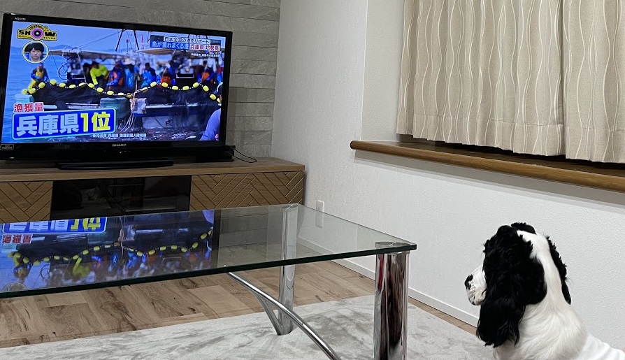 そして、お散歩を終えてゆっくりしてた夜。ロンがテレビをじーっとみているので、「何をみているのかな?」と思ったら兵庫県の情報が出ていました。何を隠そうロンは兵庫県出身なのです!