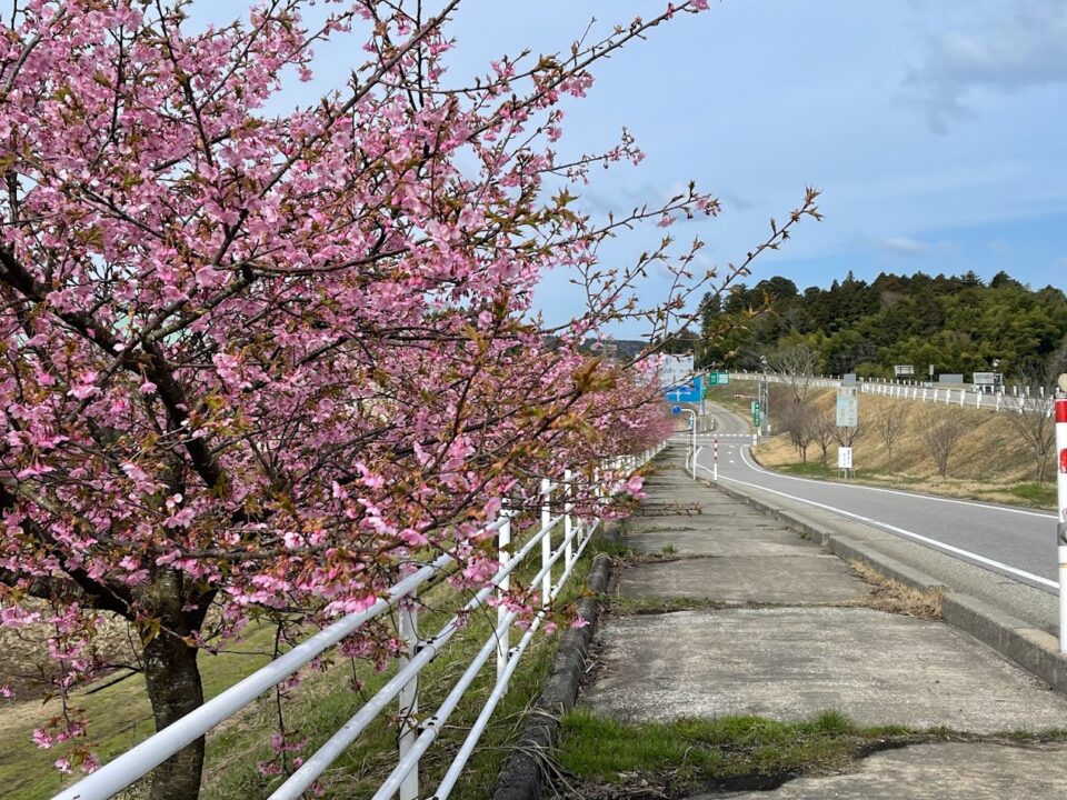 折り返し点の桜。途中の直津ICは蕾が大分色づいてきましたが、まだ開花には時間かかりそうでした。