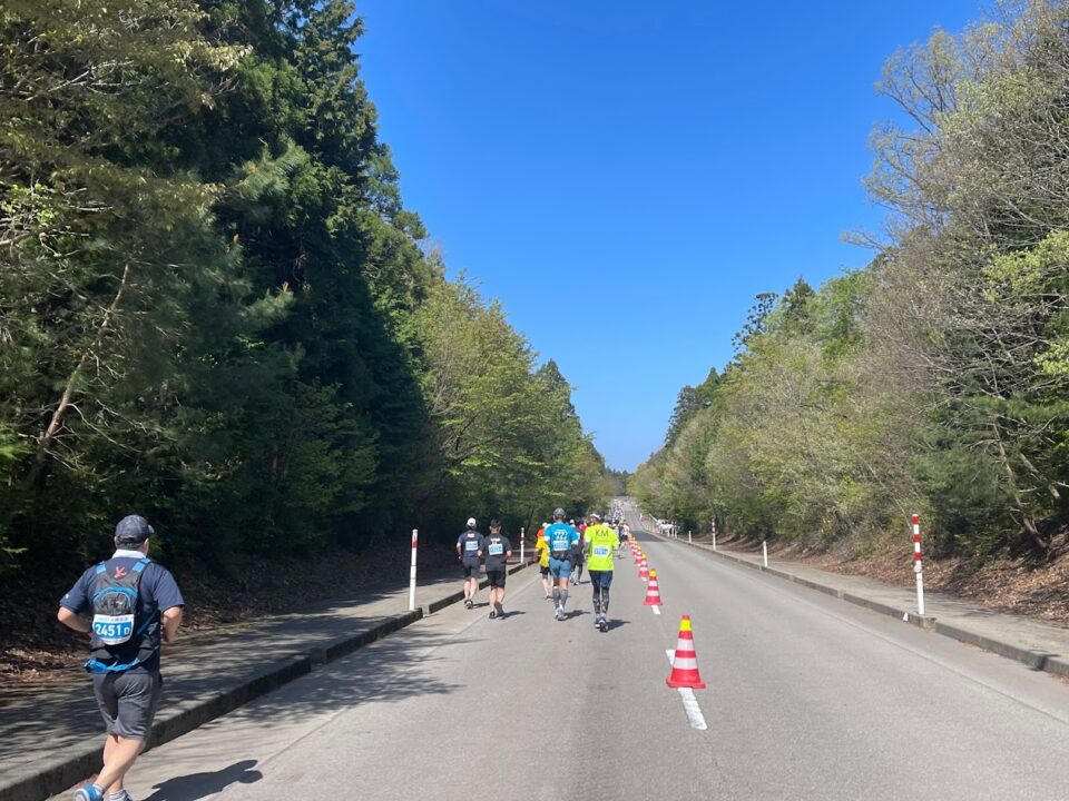 新緑を楽しみながらの直線道路。スタート会場へと戻っていきます。