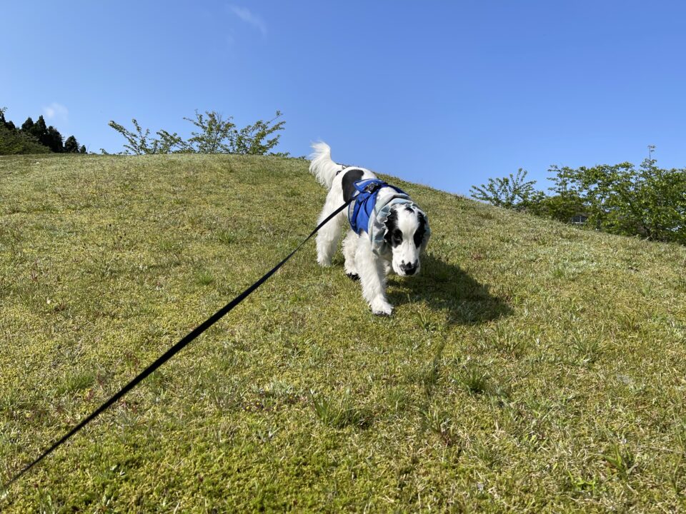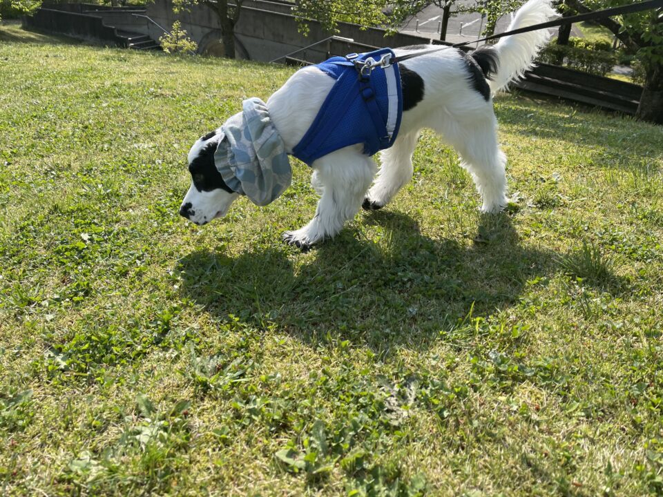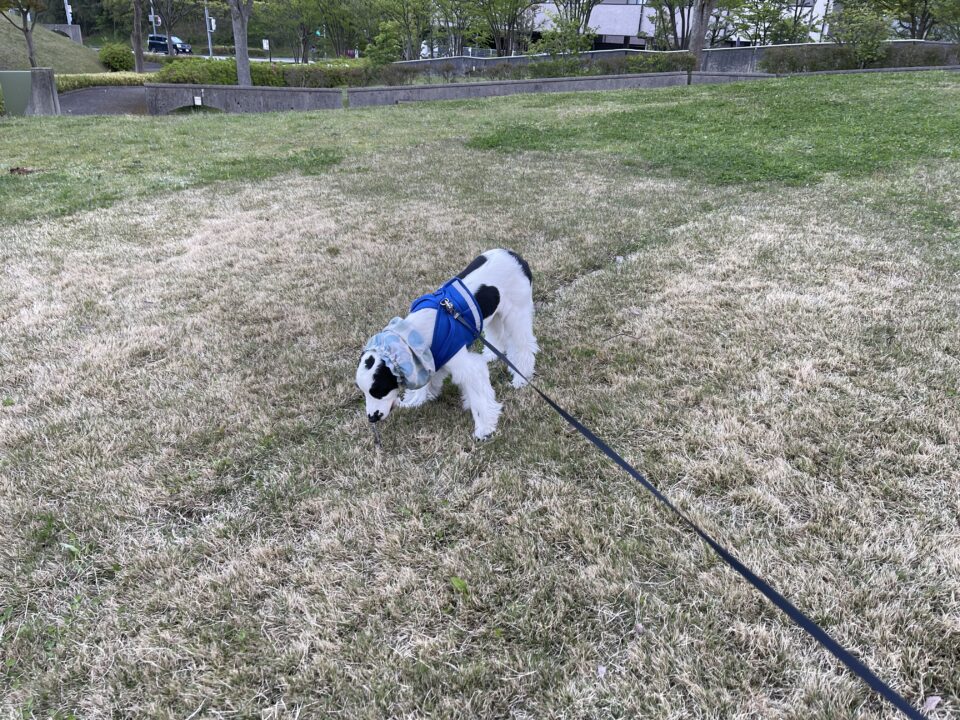 何か落ちてないかを気にして常に下を向いてお散歩するロン