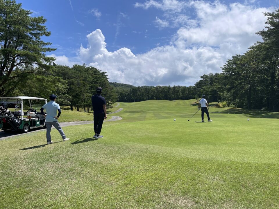 当日までまったく練習をしなかったので、一緒にまわって頂く方に迷惑をかけてはいけないとさすがに朝30球ほど練習しましたが、思いのほか体はスイングを覚えていて、それなりに球が当たる事を確認。いざ、本番に挑んだのでした。
