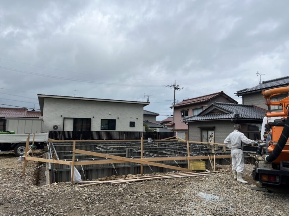 この時から1週間たった今は打設された立ち上がりコンクリートも乾き、型枠が撤去されました。