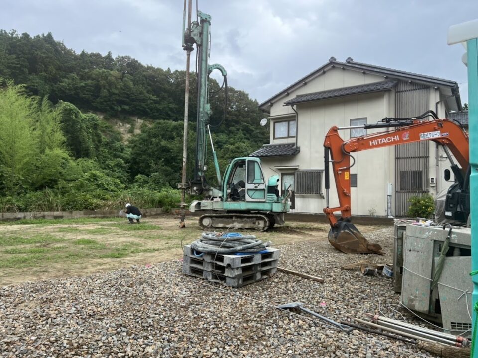 1つは今週金曜日(22日)に上棟の納屋(担当:白石)です。2つ目は先日地鎮祭を行った現場(担当:堂下)で、基礎の手前の地盤改良工事が終わり、これから基礎工事着工という段階です。