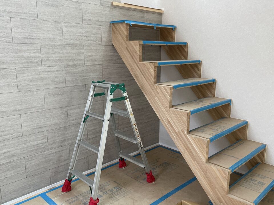 木質のオープン階段。後日LIXILさんの手摺が設置されます。