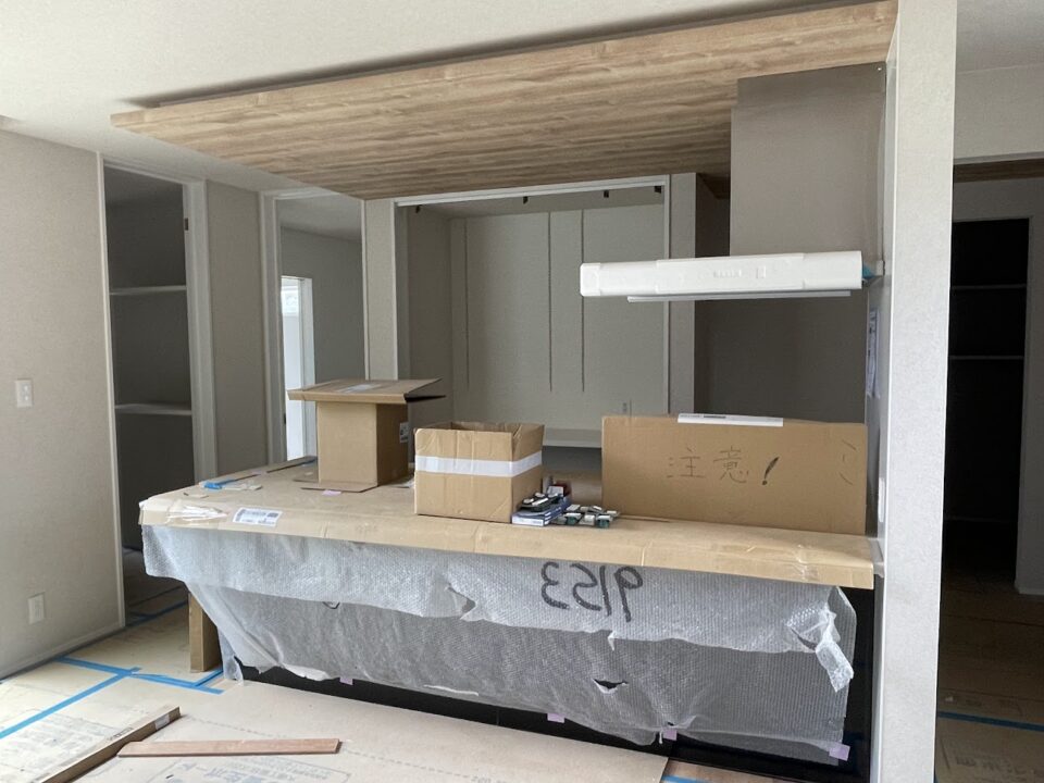 現在は内装工事を終えて、照明器具や住宅設備の器具付けが行われておりますがチラっと内観をご紹介。