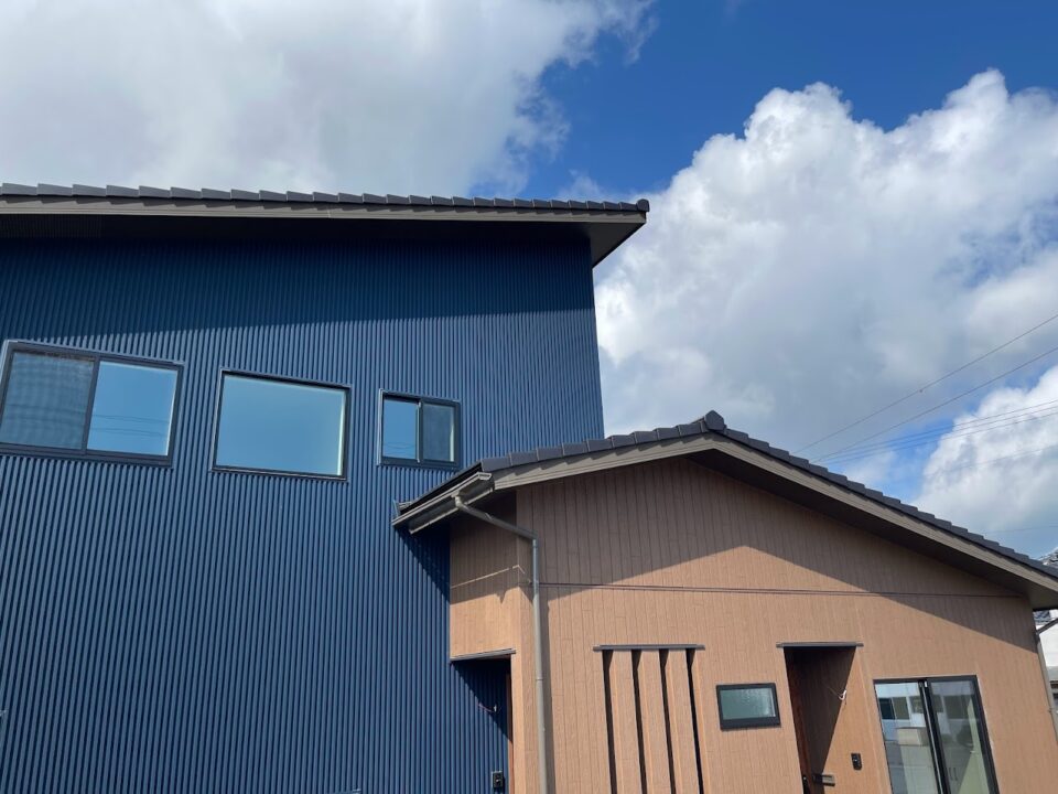 ガルバリウムと木目の外壁の相性がバッチリの外観
