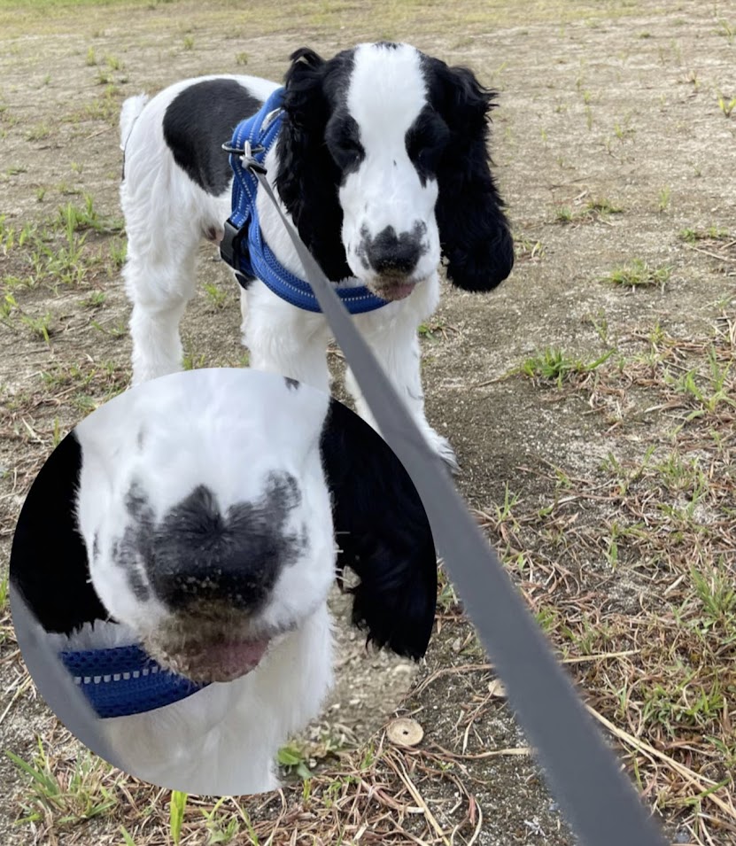 土をほじるので、自慢の綺麗な白い手足も茶色くなってしまっています。。。ホントやめてほしい。散歩の後に手足拭くの大変だし。。。