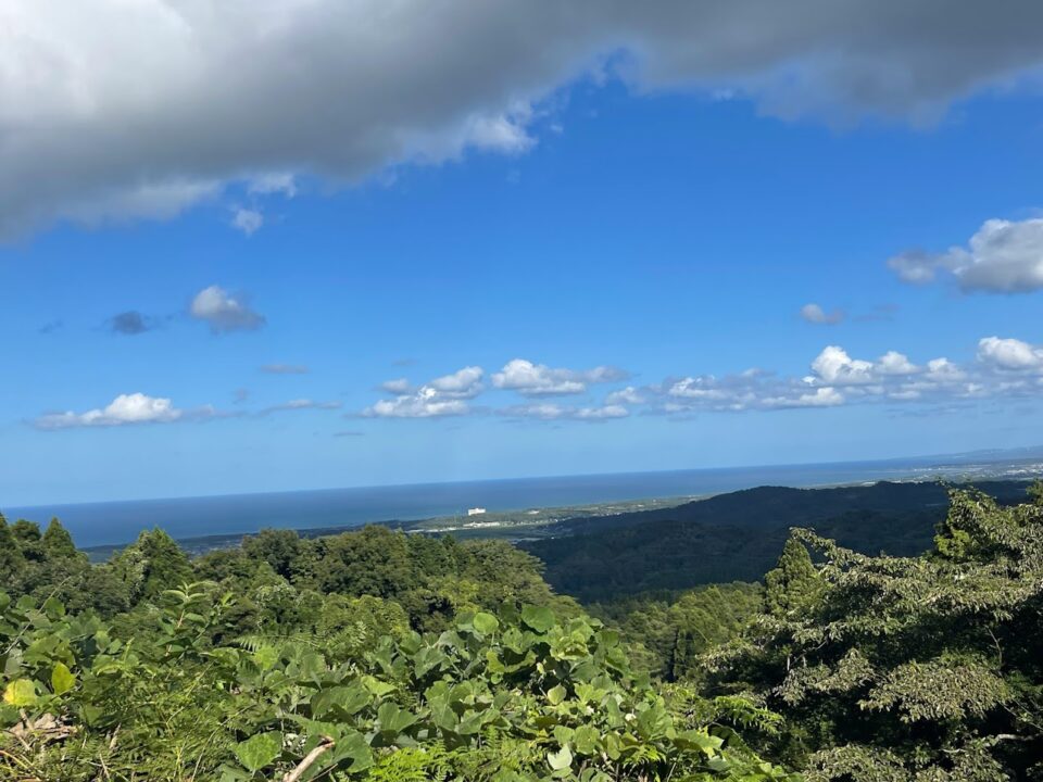 宝達山から見下ろす町並みと町並みの奥に広がる日本海