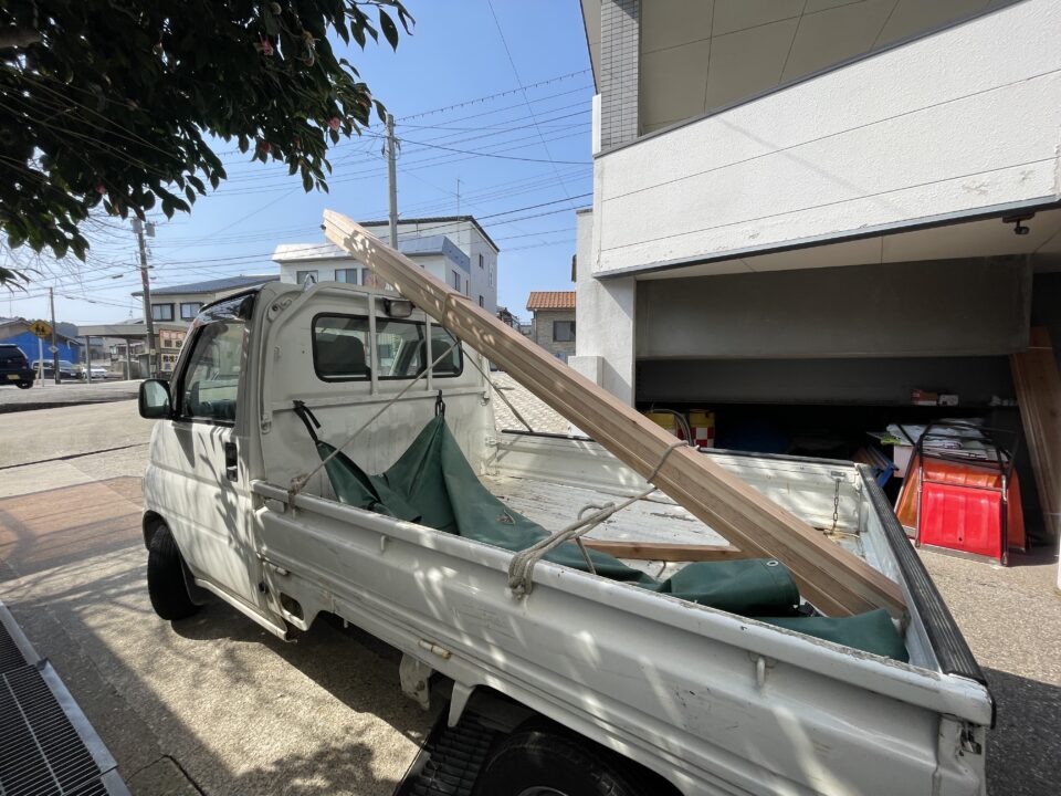 本当に出来ているのか半信半疑だったので、荷台にある材木が崩れそうじゃないか常に確認しながら運転する事約20分。何事もなく現場へ配達出来ましたー!