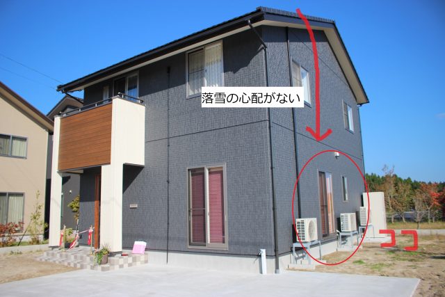 そして、屋根から落ちてくる雪はサンルームの屋根を破損する可能性もありますので、極力屋根雪がおちないところが理想です。