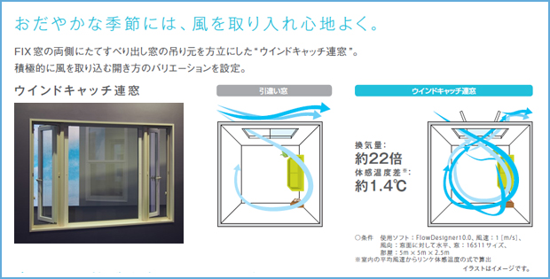 うん。やはり風は洗濯物を乾かす効果があるようです。ちなみに風を室内に取り入れる為には大きな窓を設置すればよいという訳ではありません。どれだけ大きな引き違い窓をつけるより、小さくてもこのような窓を設置するのが効果的なんです。