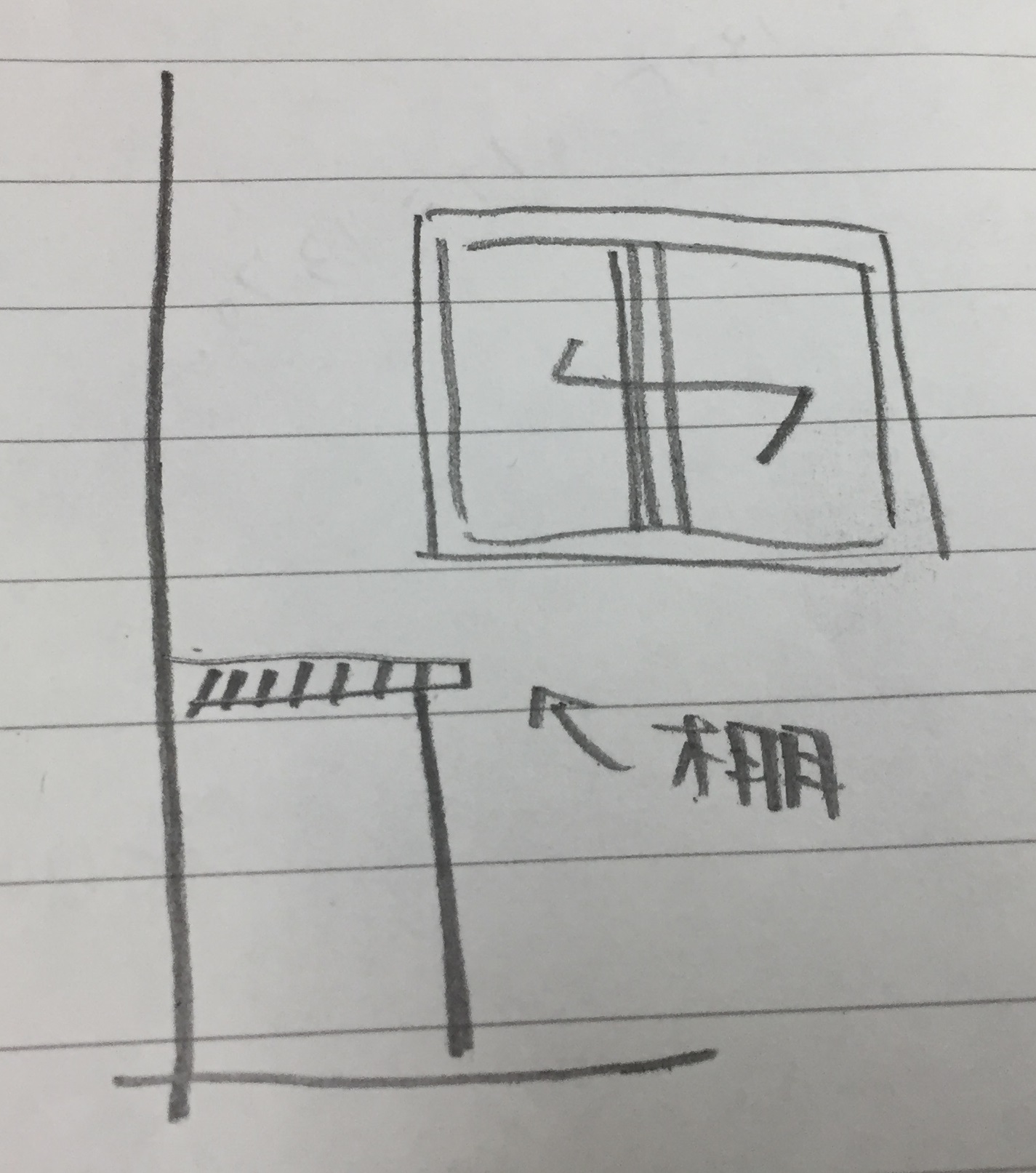 こんな感じ。窓が下まで伸びると棚に当たりますよね。。。