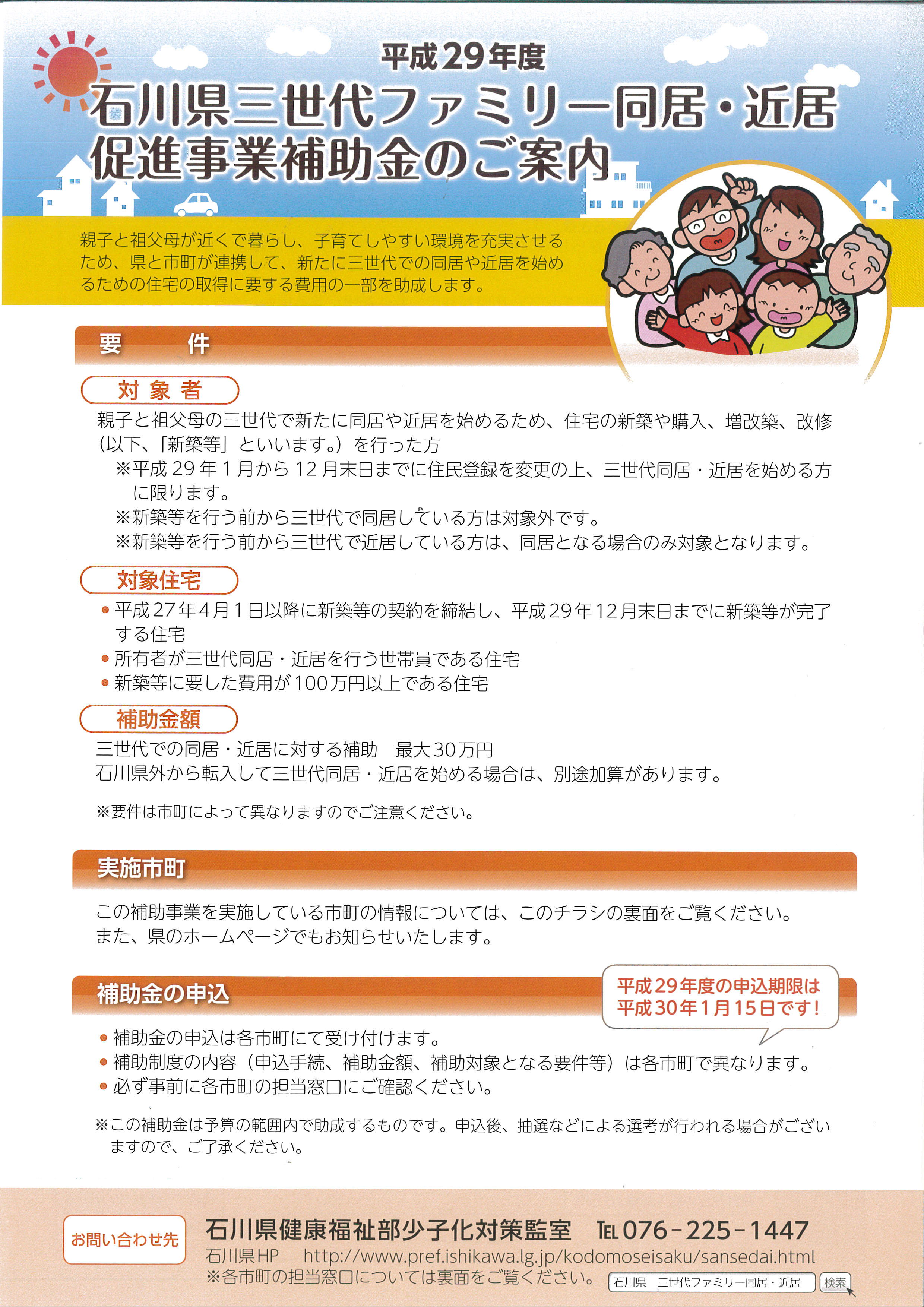 石川県三世代ファミリー同居・近居促進事業補助金