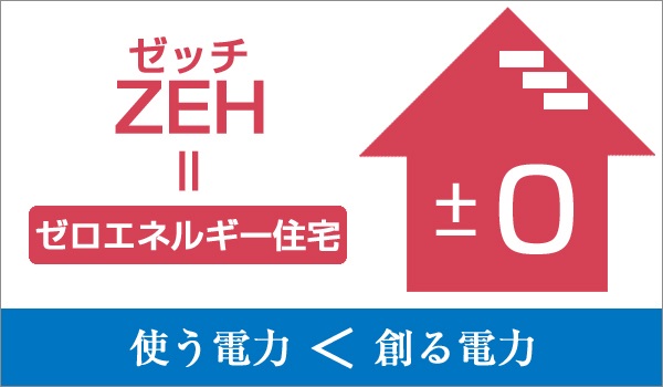 ZEHとは、上のイラストにも書いてあるように使う電力より創る電力を多くしようね(=エネルギー使用量ゼロ)っていう住宅です。