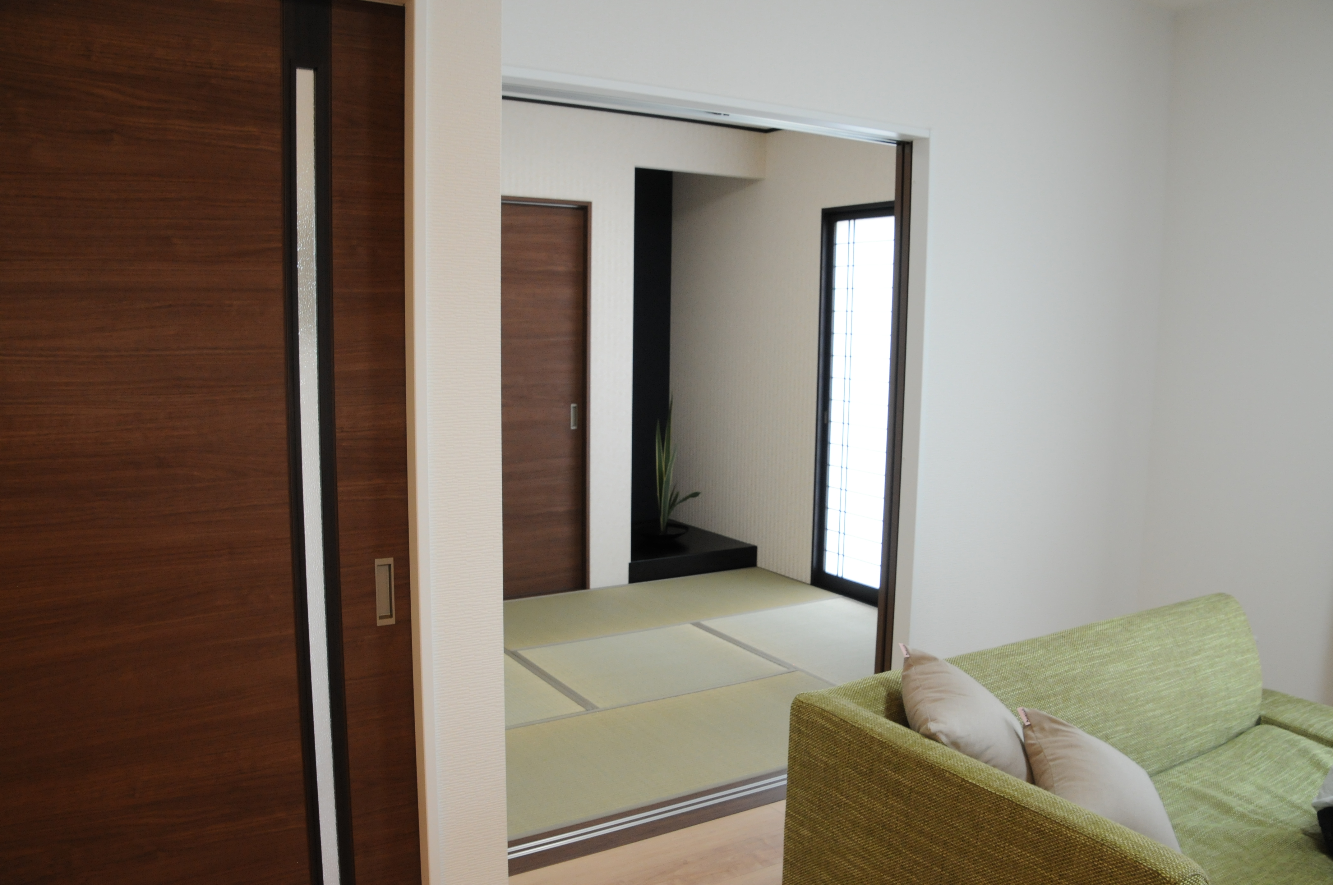 来客時には重宝する和室もLDKに隣接。扉で部屋を仕切れるようにする事によって、和室単独としても使えるし、ホームパーティーの際にはプラスワンリンビングとしても空間を広く使えるようにしました。