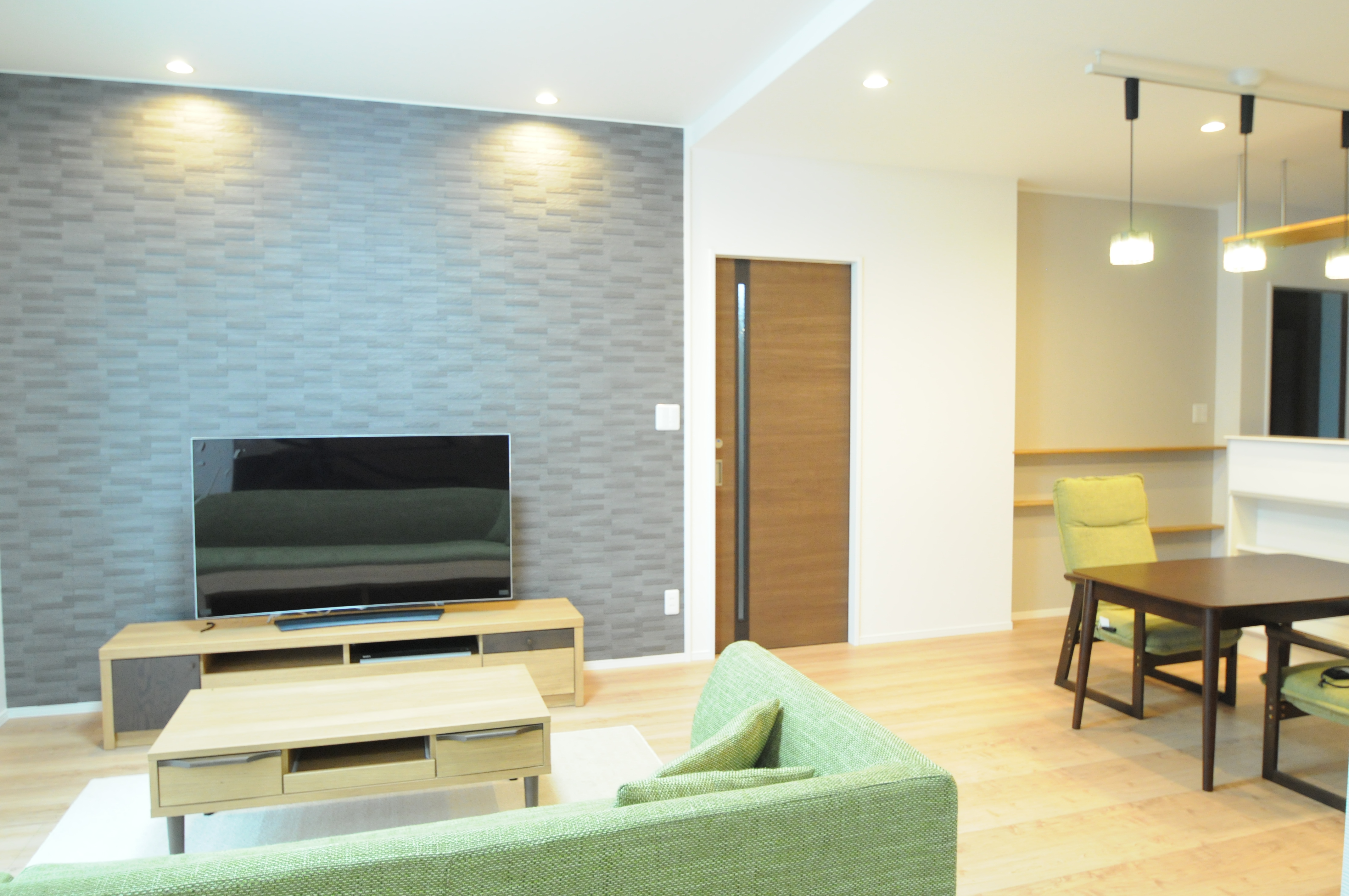 リビングの壁一面にはエコカラットを採用