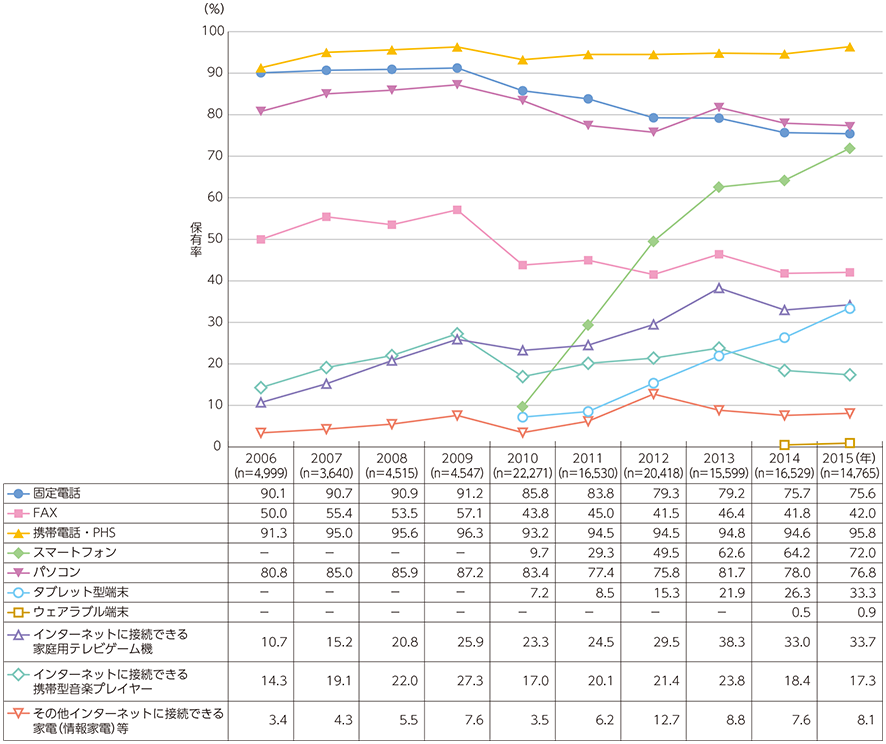 情報機器の保有率。スマホは7割超えました(平成28年総務省情報通信白書より引用)