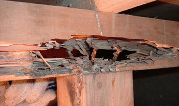 シロアリの被害状況(シティハウスが採用している防蟻剤=エコボロンのHPより引用)