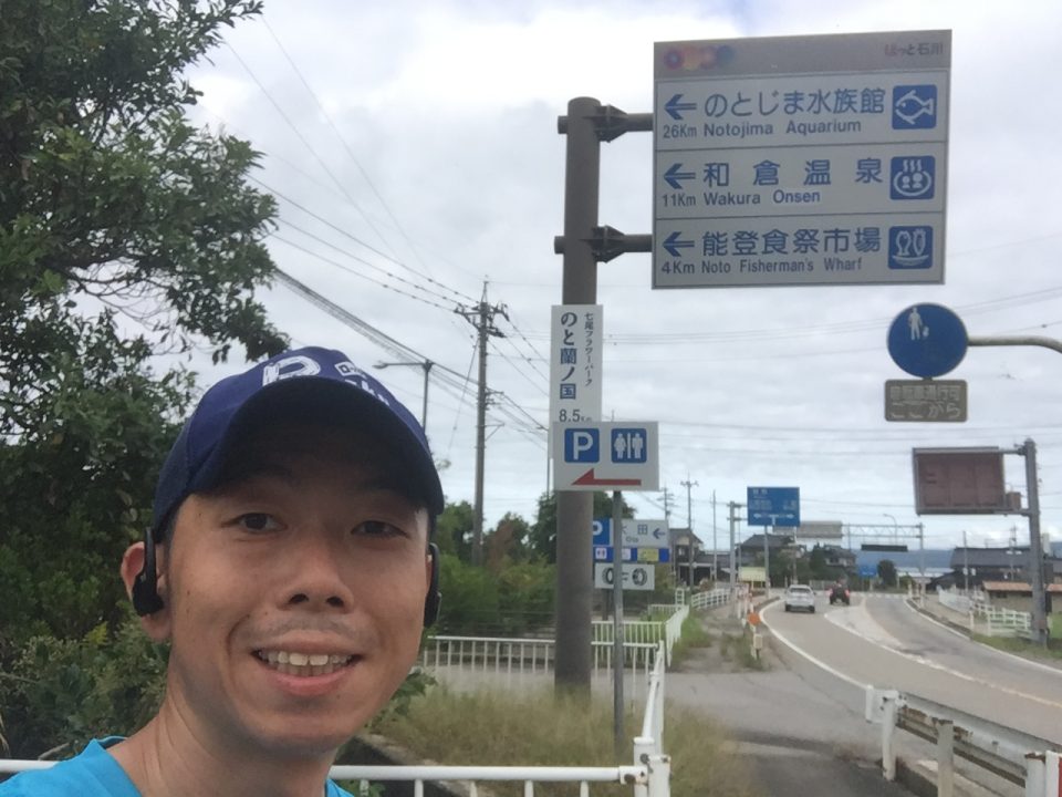 走り始めて50分経過(A地点)。まだまだ元気いっぱいで体に異変を感じる事もなく、ここでUターンして七尾の街、そして和倉温泉(11km先)へ向かいます。