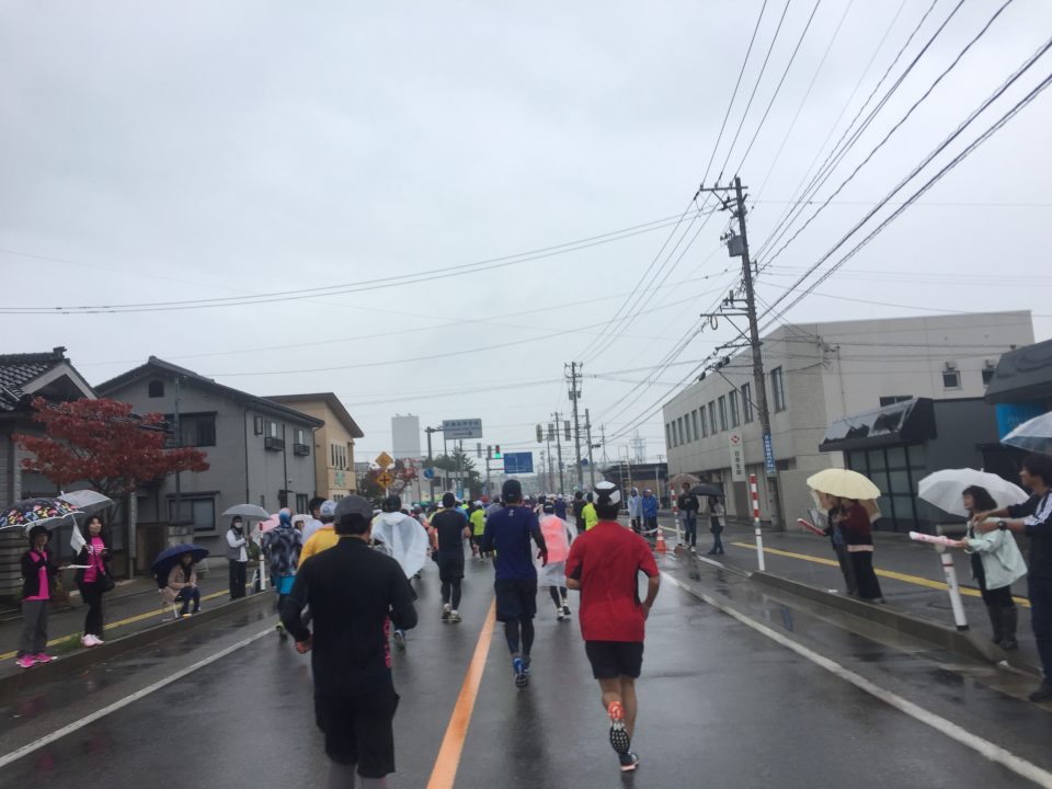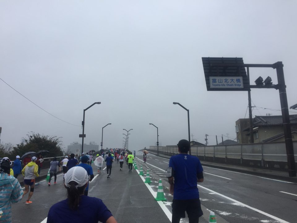 庄川です。ここでちょっと雨足が強くなってきました。今回が初めての富山マラソン。走ってみての感想は【とにかく先の見えない直線距離が長い】っていう事でした。庄川を後にして通過したのは、長男の中学野球や高校野球で何回も訪れた新湊高校付近でした。懐かしい〜♪