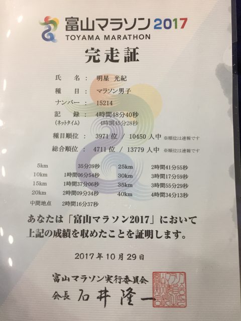 こんな感じの富山マラソンでした♪また来年も参加しようっと。いやーマラソンってホント楽しいですね♪では!